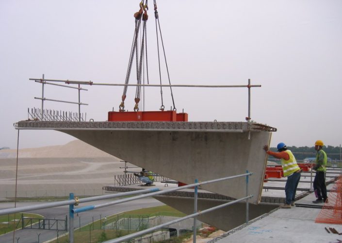 – Lifting & installation of precast segments and T-shaped wing slab at both sides